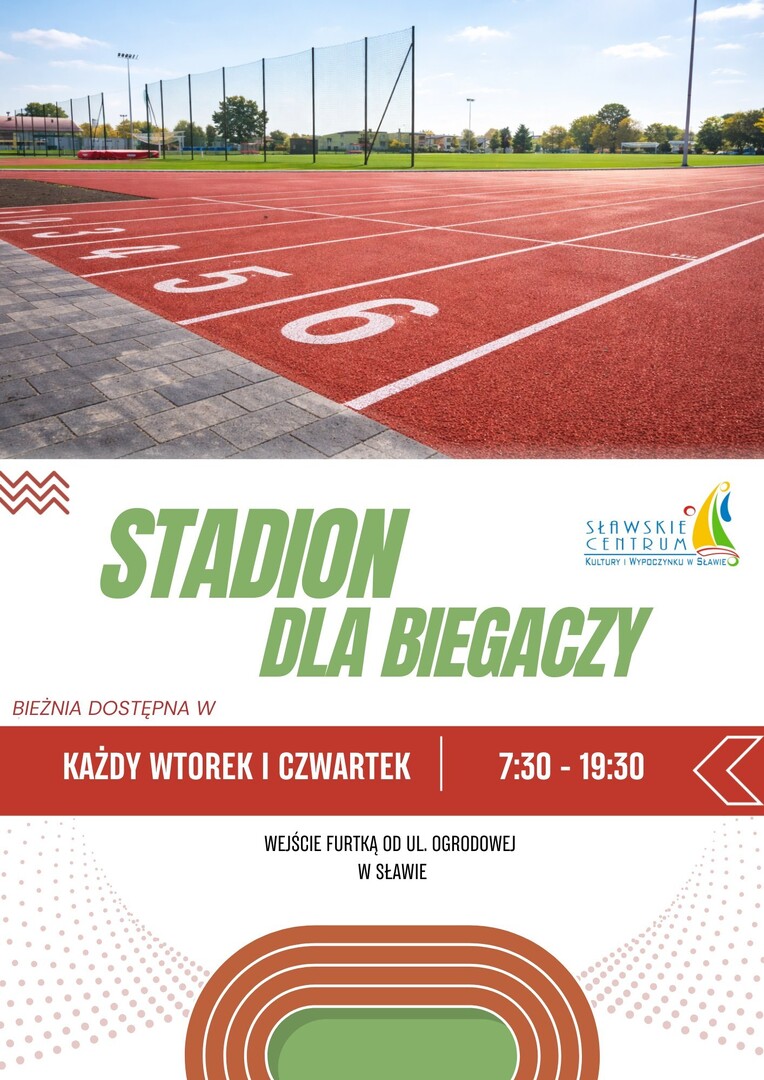 Sławskie Centrum Kultury i Wypoczynku udostępnia bieżnie Stadionu Miejskiego im. Zbigniewa Gołembskiego dla mieszkańców. Od przyszłego tygodnia z obiektu przy ul. Ogrodowej będzie można korzystać w każdy wtorek i czwartek od 7:30 do 19:30.