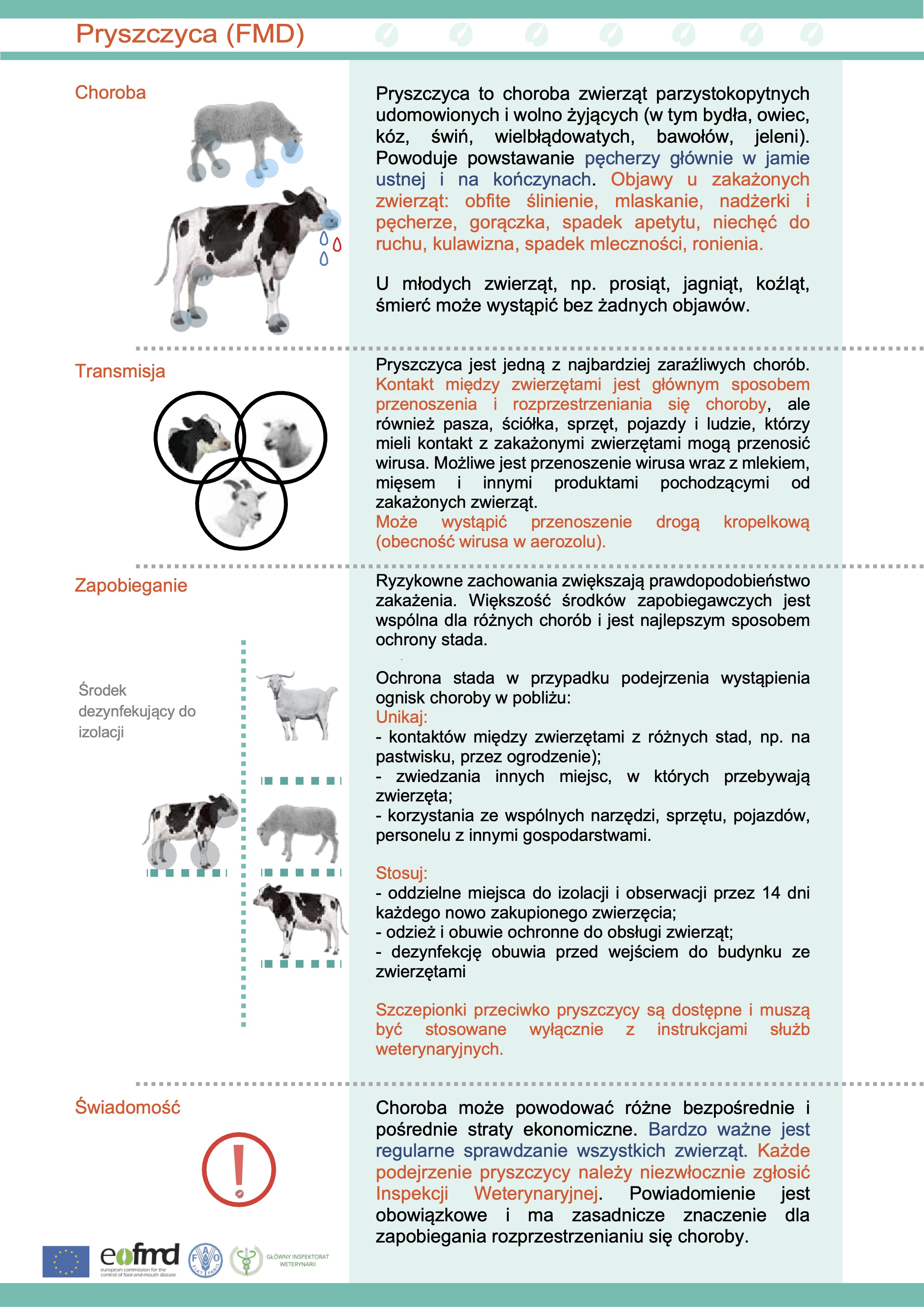 – Każde podejrzenie pryszczycy należy niezwłocznie zgłosić Inspekcji Weterynaryjnej – przypomina ulotka Powiatowego Lekarza. Szczegóły na ulotce.