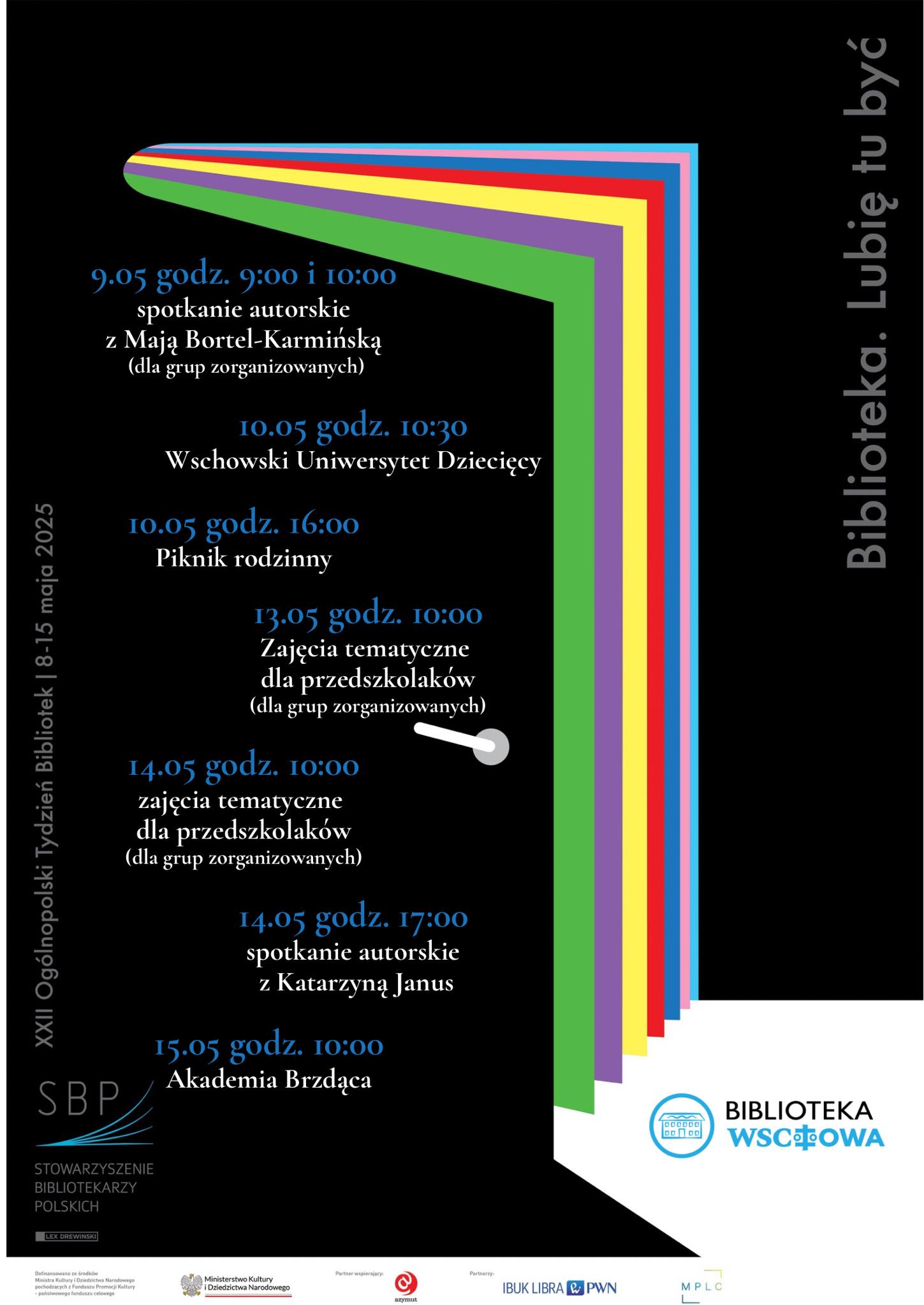 Biblioteka Publiczna Miasta i Gminy we Wschowie zaprasza mieszkańców na XXII Tydzień Bibliotek. Wydarzenia potrwają od 9 do 15 maja i obejmą spotkania autorskie, warsztaty oraz piknik rodzinny. Tegoroczna edycja odbywa się pod hasłem „Biblioteka. Lubię tu być”.