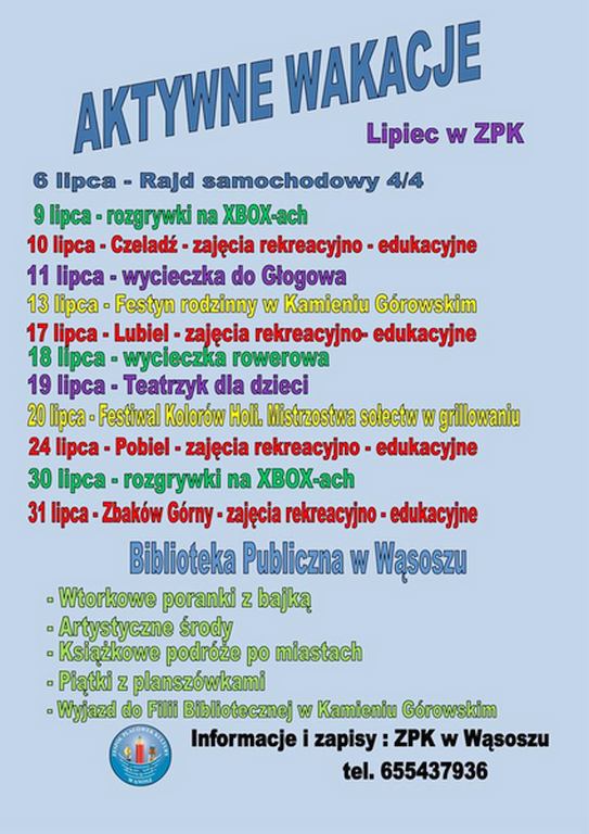 Zespoł Placówek Kultury przygotował na okres wakacyjny, ciekawą ofertę zajęć. M.in. rozgrywki na XBOXach, festyn rodzinny w Kamieniu Górowskim, teatrzyk dla dzieci, zajęcia rekreacyjno-edukacyjne. Co przygotowała Biblioteka Publiczna?