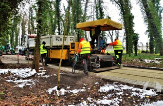 Trakt pieszy został połączony trzema mostkami, a na ścieżkach kładziona jest przedostatnia warstwa nawierzchni. Ponadto zamontowane zostały pierwsze elementy małej architektury, są nimi kosze na śmieci. Zakończyło się także nasadzanie 109 drzew, które zaplanowano w projekcie wzbogacą one bujną parkową zieleń, która jest jednym z najważniejszych elementów tego zadania.