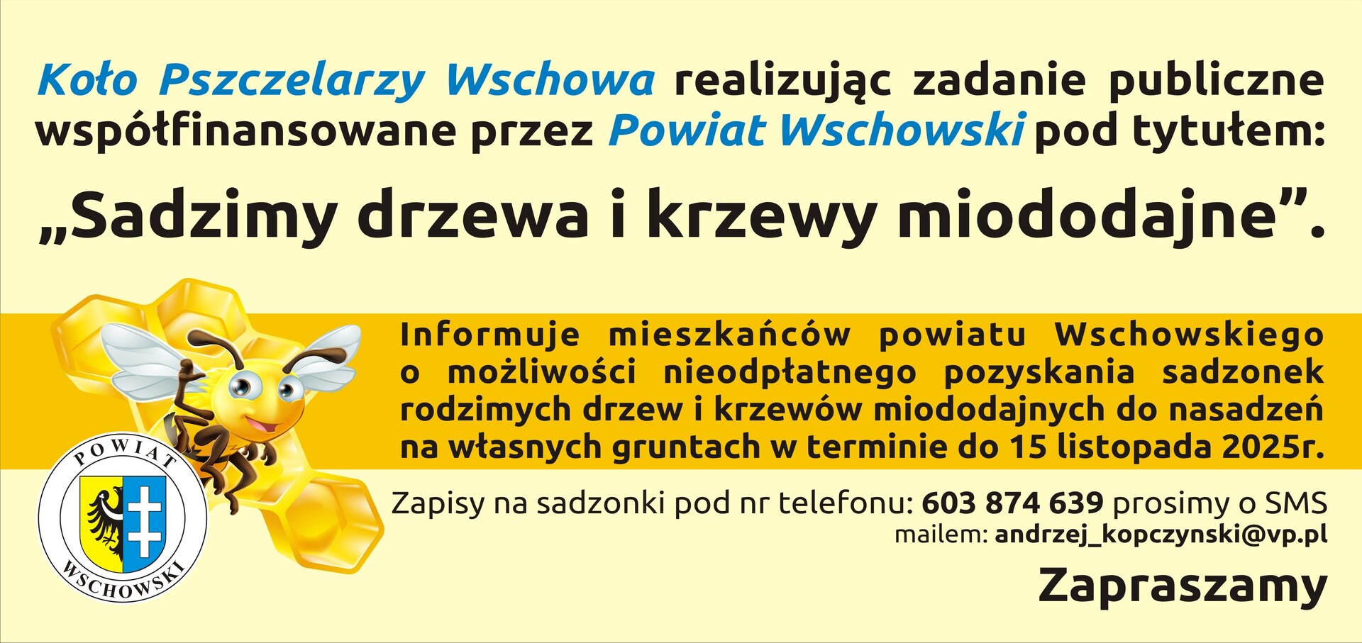 Inicjatywa pn. "Sadzimy drzewa i krzewy miododajne" jest częścią zadania publicznego współfinansowanego przez Powiat Wschowski. Sadzonki są przeznaczone do nasadzeń na prywatnych gruntach.