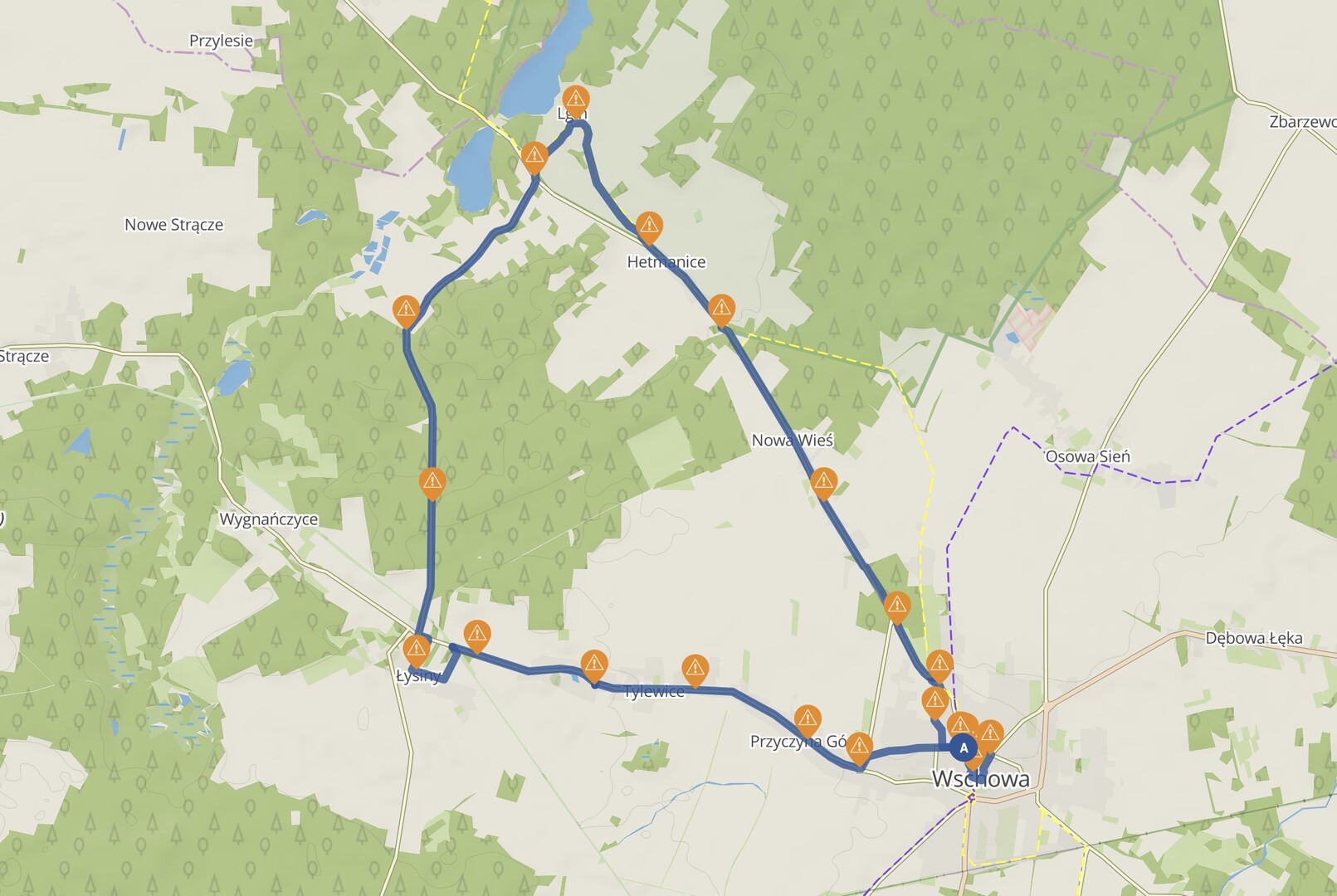 Po zakończeniu procesji uczestnicy wyruszą na właściwą trasę, która prowadzi przez Nową Wieś, Hetmanice, Lgiń, Łysiny, Tylewice i Przyczynę Górną. Droga przebiega głównie po asfalcie i drogach utwardzonych. Organizatorzy przewidują powrót do Kaplicy Jana Pawła II przy Klasztorze, gdzie EDR się zakończy.
