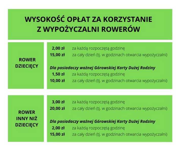 Wszystkich mieszkańców Góry i okolic zachęcamy do korzystania z wypożyczalni rowerów. Znajduje się przy stadionie miejskim na ul. Sportowej 1. Do dyspozycji użytkowników jest 6 rowerów.