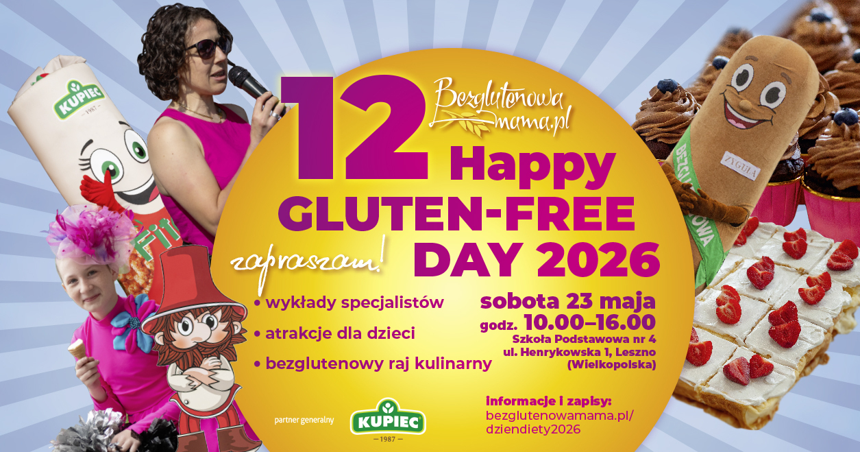 W sobotę 23 maja 2026 r. w Lesznie odbędzie się XII Happy Gluten Free Day – największy w Polsce festyn i targi produktów bezglutenowych. Wstęp jest bezpłatny, nie obowiązują zapisy. W ubiegłym roku wydarzenie odwiedziło ponad 5 tysięcy osób z Polski i zagranicy.