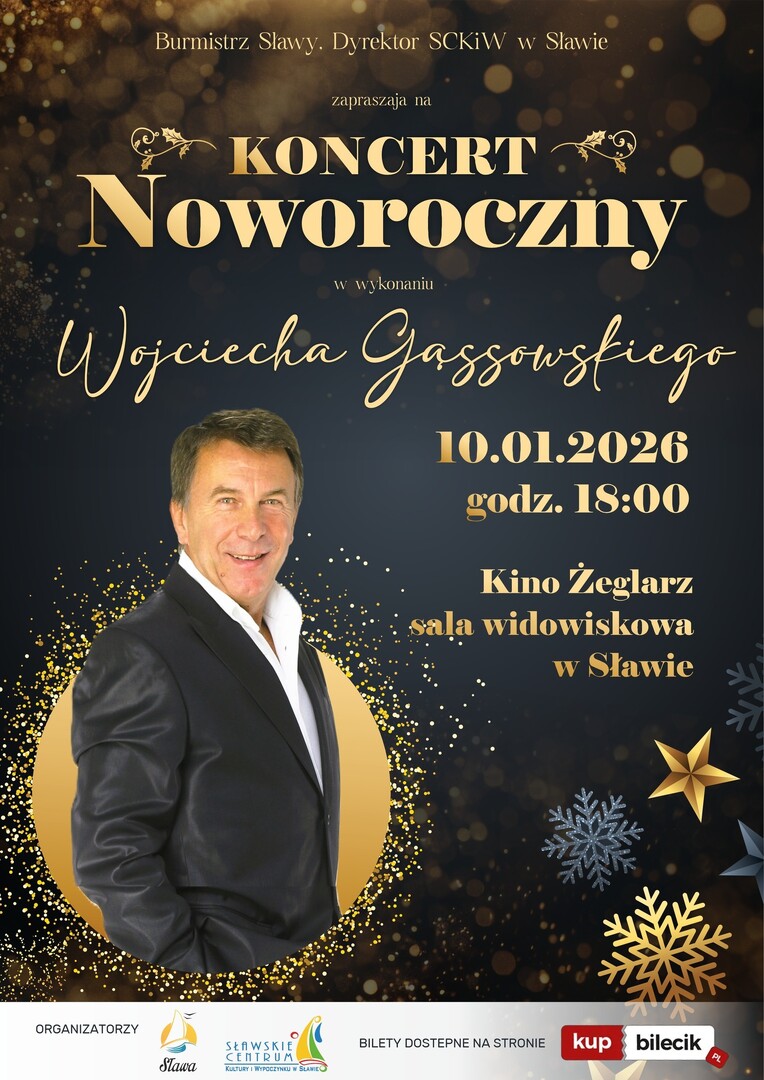 Legendarny polski piosenkarz Wojciech Gąssowski przyjedzie do Sławy z recitalem. Koncert Noworoczny odbędzie się 10 stycznia 2026 roku o godzinie 18:00 w Kinie Żeglarz. Wydarzenie organizują Burmistrz Sławy Cezary Sadrakuła oraz Sławskie Centrum Kultury i Wypoczynku pod kierownictwem dyrektora Tomasza Krzymińskiego.