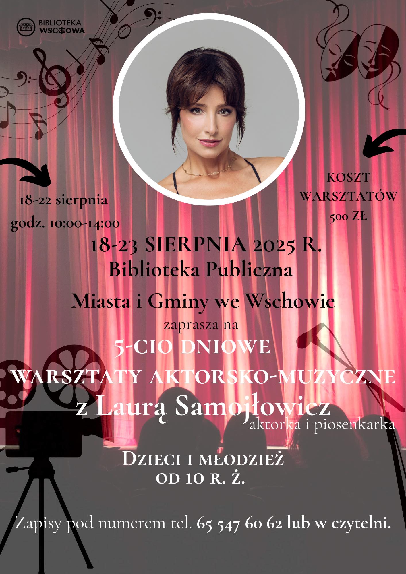 Biblioteka Publiczna Miasta i Gminy we Wschowie zaprasza dzieci i młodzież od 10 roku życia na wyjątkowe warsztaty aktorsko-muzyczne. Zajęcia poprowadzi Laura Samojłowicz, aktorka znana z seriali telewizyjnych w tym „M jak Miłość” i zwycięstwa w programie "Jak oni śpiewają".