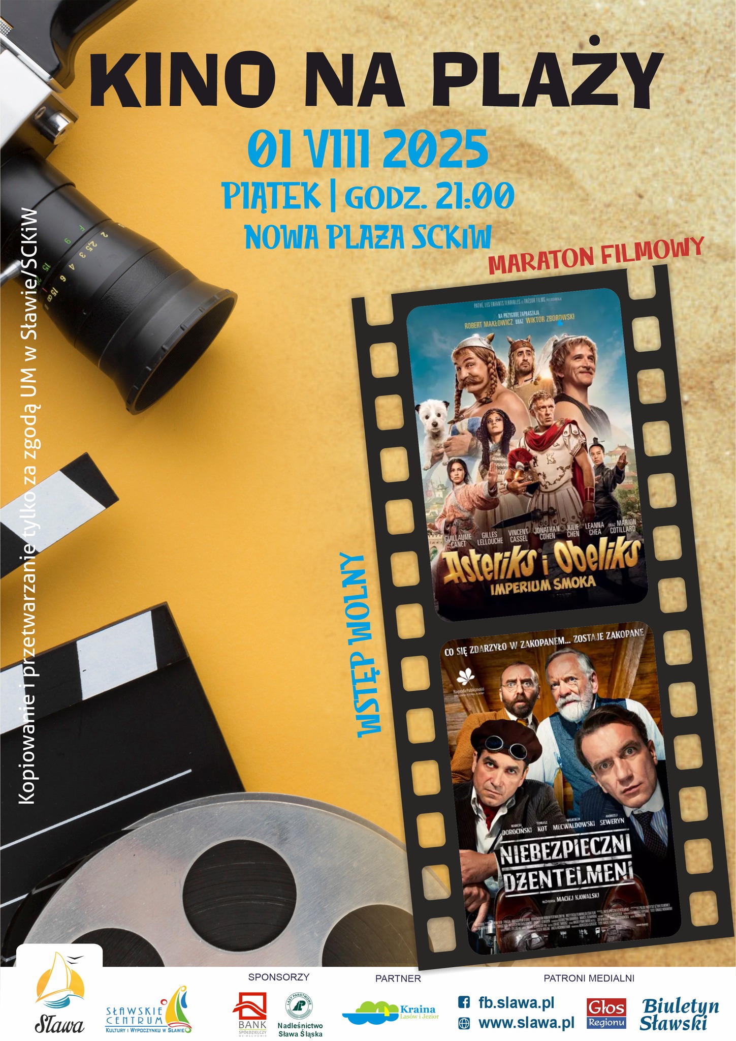 Mieszkańcy Sławy i turyści obejrzą dwa kinowe hity pod gołym niebem już w piątek 1 sierpnia. Na Nowej Plaży o godzinie 21:00 rozpocznie się wyjątkowy seans w ramach tegorocznych Dni Sławy – organizatorzy przygotowali francuską komedię "Asteriks i Obeliks: Imperium Smoka" oraz polski film "Niebezpieczni Dżentelmeni".
