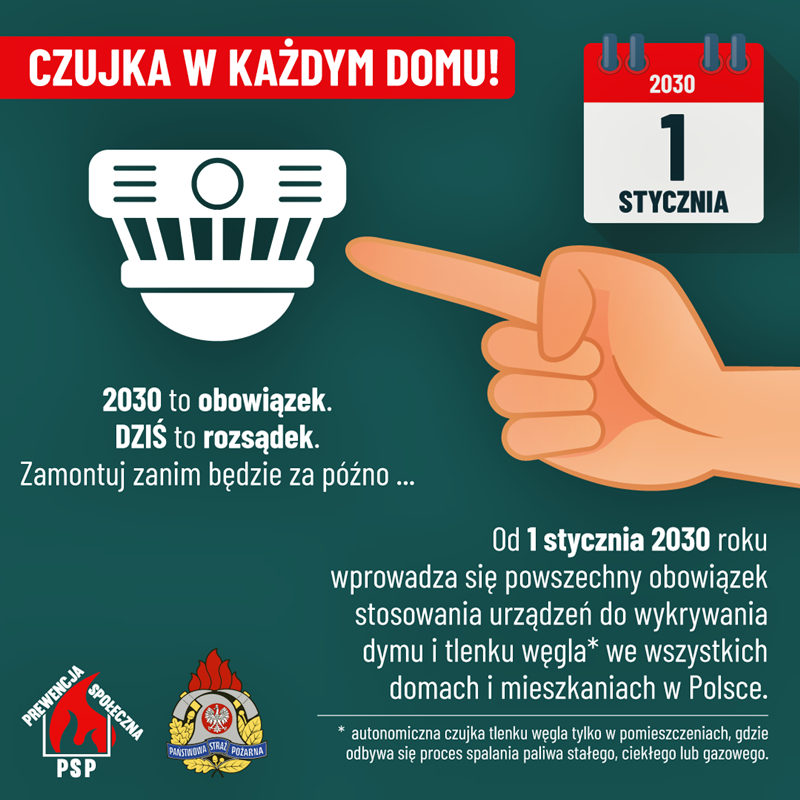 Nowe przepisy wprowadzają obowiązek instalacji czujek stopniowo. Pomieszczenia mieszkalne wykorzystywane na cele hotelowe muszą mieć czujki dymu i czadu do 30 czerwca 2026 roku. Dla zwykłych mieszkań i domów, gdzie pali się w piecu czy kotle gazowym, termin to 1 stycznia 2030 roku.