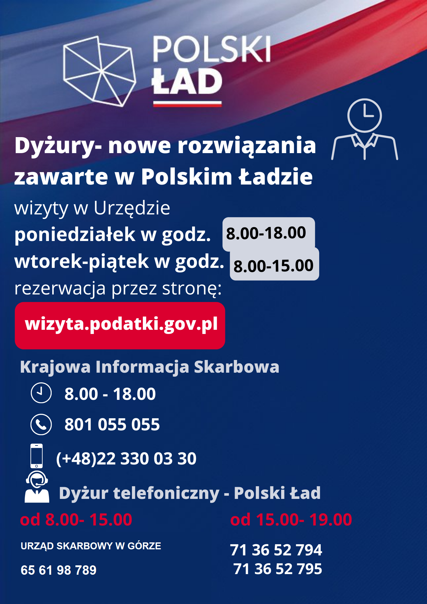 Urząd Skarbowy w Górze informuje o dyżurach podatkowych związanych z Polskim Ładem.