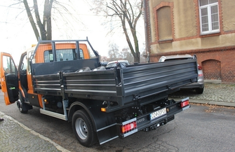 Powiat Wschowski zakupił nowy samochód ciężarowy brygadowy - IVECO Daily E6 - z zabudową typu wywrotka, którego całkowita masa załadunku wynosi do 7,2 ton.