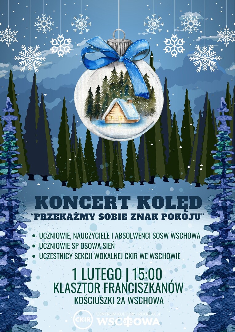 Centrum Kultury i Rekreacji we Wschowie organizuje wyjątkowy koncert „Przekażmy sobie znak pokoju". Na scenie pojawią się trzy zespoły: uczniowie, nauczyciele i absolwenci Specjalnego Ośrodka Szkolno-Wychowawczego we Wschowie, uczniowie Szkoły Podstawowej w Osowej Sieni oraz uczestnicy sekcji wokalnej CKiR.