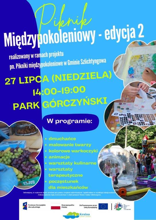 Po sukcesie pierwszej edycji podczas Dni Szlichtyngowy, gmina organizuje kolejne rodzinne spotkanie. W niedzielę 27 lipca Park Górczyński wypełni się atrakcjami dla dzieci, rodziców i dziadków. Wydarzenie potrwa od godziny 14:00 do 19:00.