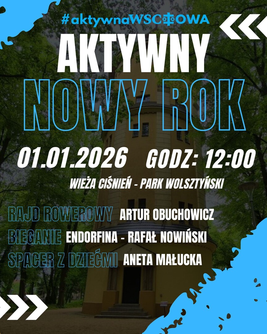 Stowarzyszenie Aktywna Wschowa zaprasza mieszkańców na sportowe rozpoczęcie 2026 roku. Zbiórka odbędzie się 1 stycznia pod wieżą ciśnień w Parku Wolsztyńskim. Start o godzinie 12:00.
