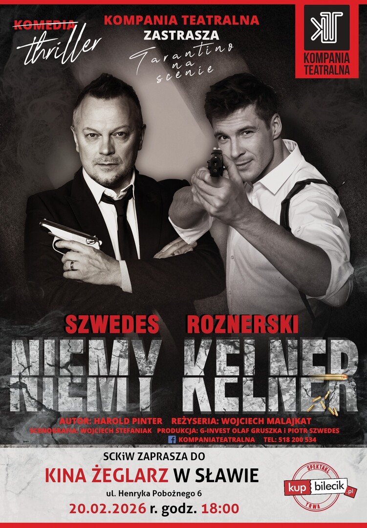 Mikołaj Roznerski po raz drugi w ciągu roku wystąpi w Sławie. 20 lutego wraz z Piotrem Szwedesem zaprezentuje spektakl „Niemy Kelner" w reżyserii Wojciecha Malajkata. Organizatorem wydarzenia jest Sławskie Centrum Kultury i Wypoczynku.