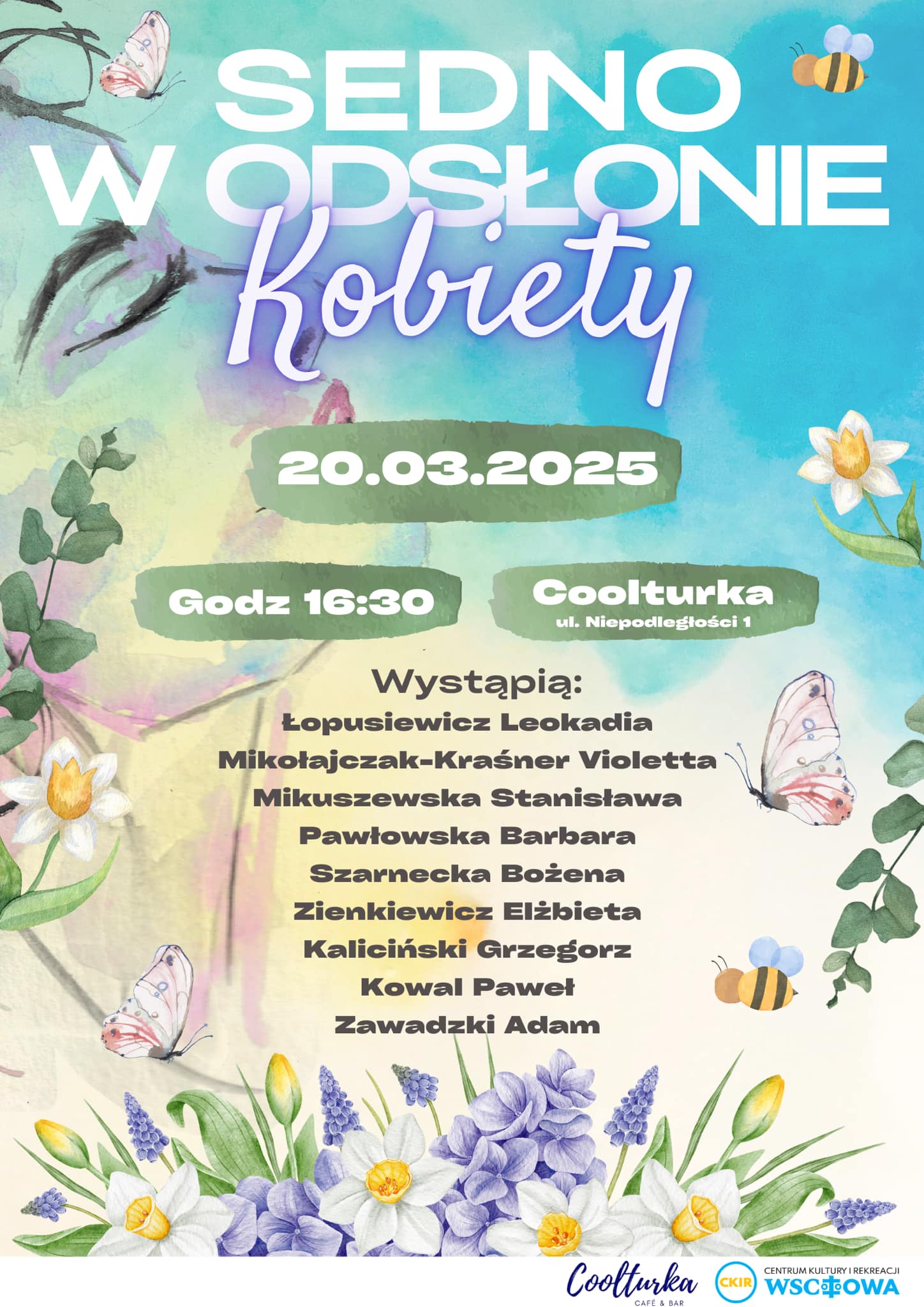 Grupa artystyczna „Sedno” zaprasza na kolejny występ w Centrum Kultury i Rekreacji we Wschowie. Koncert, nawiązujący do niedawnego Dnia Kobiet, odbędzie się 20 marca o godz. 16:30 w Coolturce przy ul. Niepodległości 1.