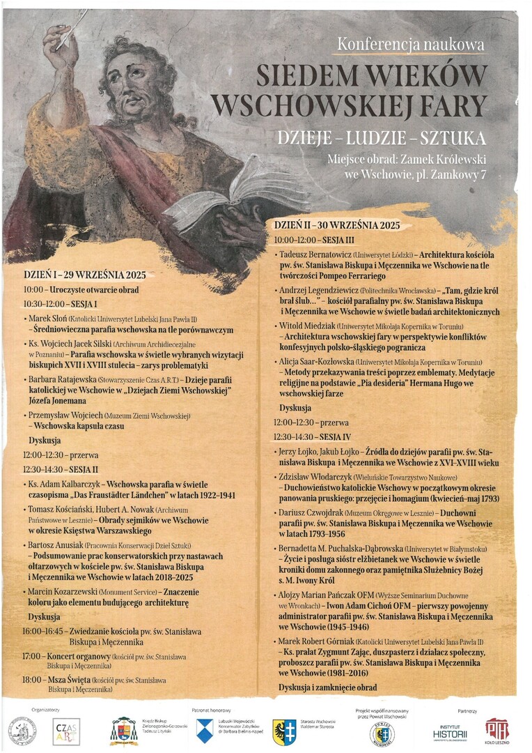 Wydarzenie rozpocznie się 29 września o godzinie 10:00. Pierwsza sesja przyniesie prezentacje dotyczące najdawniejszych dziejów parafii. Marek Słoń z Katolickiego Uniwersytetu Lubelskiego Jana Pawła II przedstawi średniowieczną parafię wschowską na tle porównawczym.