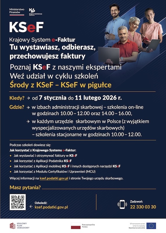Aby wyjść naprzeciw oczekiwaniom przedsiębiorców, od 7 stycznia do 11 lutego 2026 r. odbędzie się kolejna edycja akcji szkoleniowej: „Środy z KSeF – KSeF w pigułce”. Podczas spotkań eksperci przekażą przedsiębiorcom najważniejsze i praktyczne informacje jak korzystać z systemu.