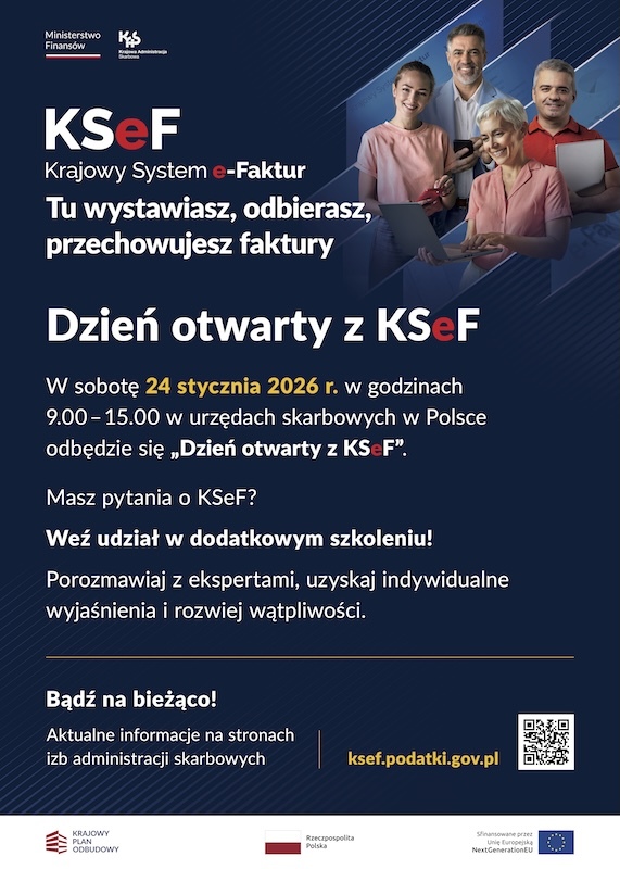 Dodatkowo, Krajowa Administracja Skarbowa organizuje „Dzień otwarty z KSeF”, który odbędzie się w sobotę 24 stycznia 2026 r. w godzinach 9:00-15:00 we wszystkich urzędach skarbowych w Polsce. Każdy zainteresowany będzie mógł wziąć udział w dodatkowym szkoleniu w dniu wolnym od pracy, spotkać się z ekspertami KSeF i uzyskać indywidualne wyjaśnienia, zadać pytania oraz rozwiać wątpliwości dotyczące korzystania z systemu.