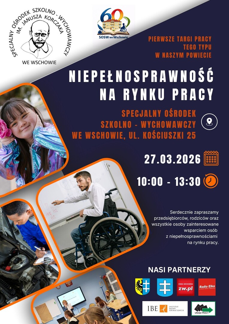 • Targi pracy „Niepełnosprawność na rynku pracy" odbędą się w Specjalnym Ośrodku Szkolno-Wychowawczym we Wschowie (ul. Kościuszki 25)