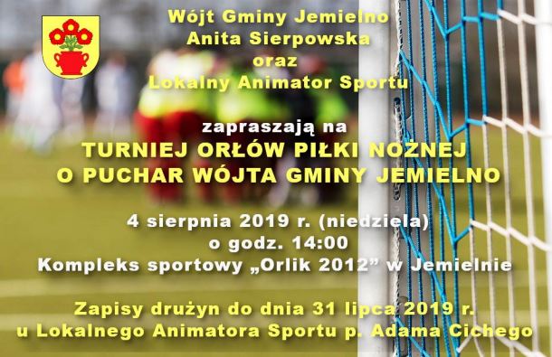 Turniej Orłów Piłki Nożnej o Puchar Wójta Gminy Jemielno, odbędzie się 4 sierpnia (niedziela). Mecze zostaną rozegrane na kompleksie "Orlik 2012" od godz. 14:00.