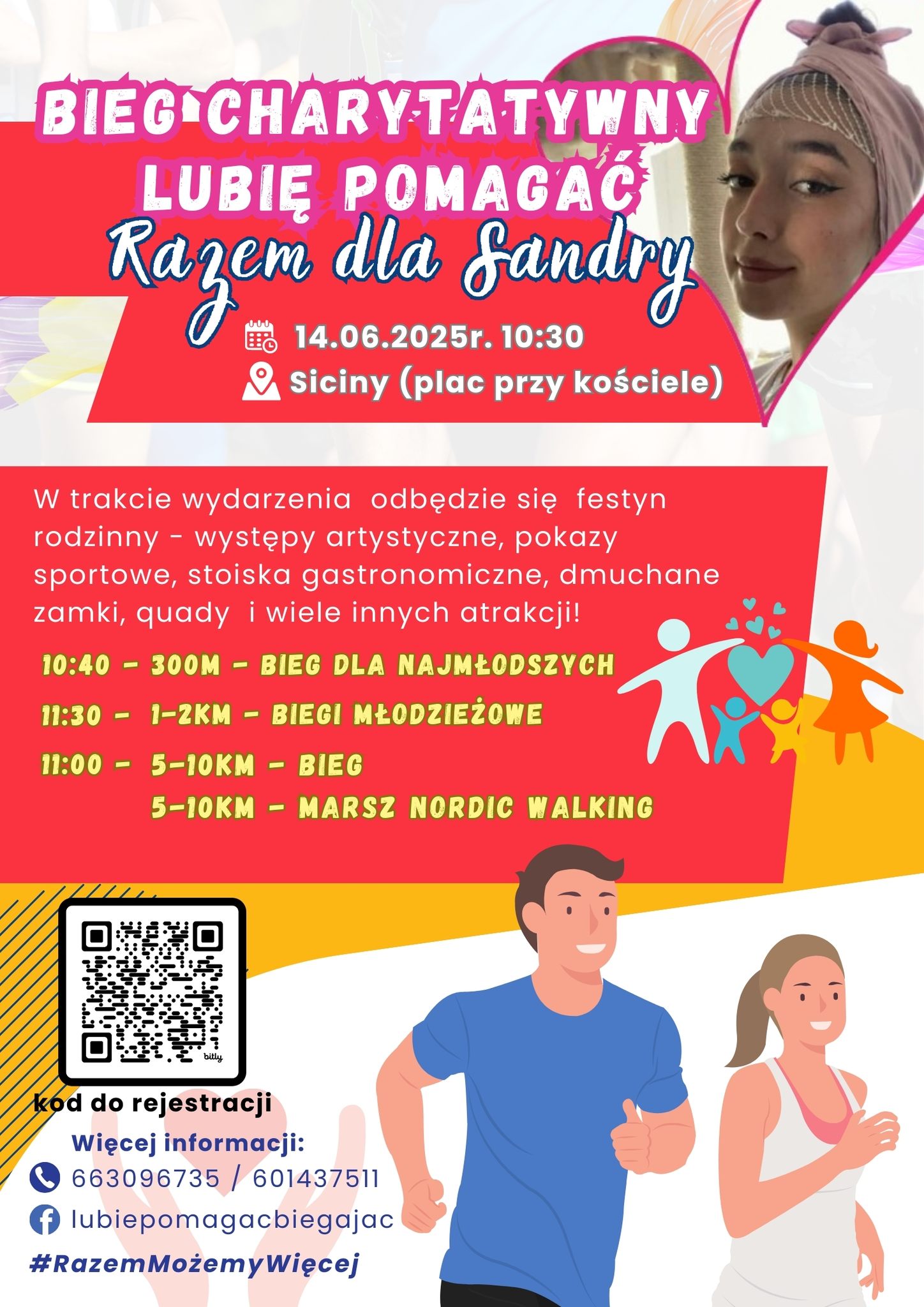 Rejestracja na biegi odbywa się TUTAJ. Osoby zainteresowane mogą również uzyskać szczegółowe informacje dzwoniąc pod numery 663 096 735 lub 601 437 511. Wydarzenie można śledzić na Facebooku na stronie „Bieg charytatywny - Lubię pomagać".