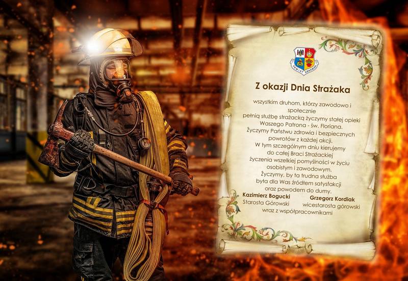 Z okazji Dnia Strażaka wszystkim druhom, którzy zawodowo i społecznie pełnią służbę strażacką życzymy stałej opieki Waszego Patrona - św. Floriana